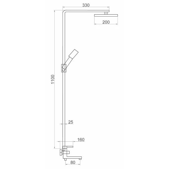 Аэратор, Металлическая розетка, Эксцентрики, Душевой шланг, Душевая лейка, Держатель для душевой лейки, Верхний душ, Смеситель, Кронштейн, Штанга душевая