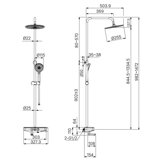 Душевая система 255 мм IDDIS Shelfy SHEWTBTi06