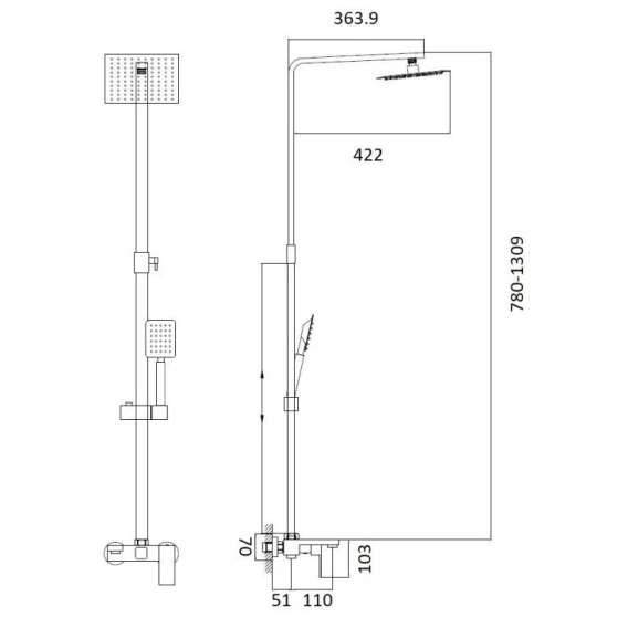 Аэратор, Металлическая розетка, Эксцентрики, Душевой шланг, Душевая лейка, Держатель для душевой лейки, Верхний душ, Смеситель, Кронштейн, Штанга душевая