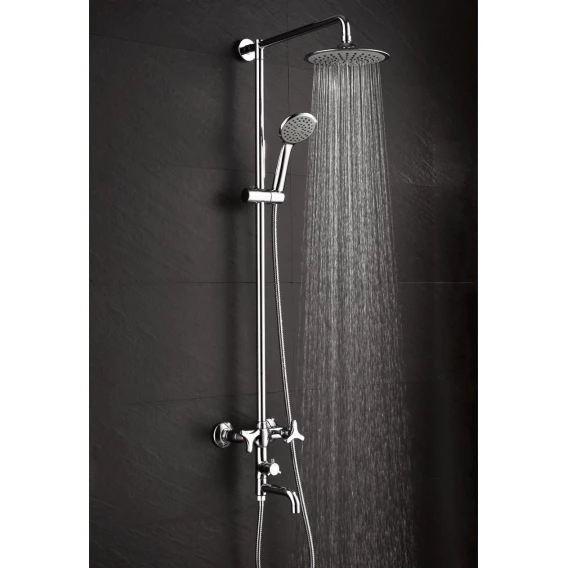 Аэратор, Металлическая розетка, Эксцентрики, Душевой шланг, Душевая лейка, Держатель для душевой лейки, Верхний душ, Смеситель, Кронштейн, Штанга душевая