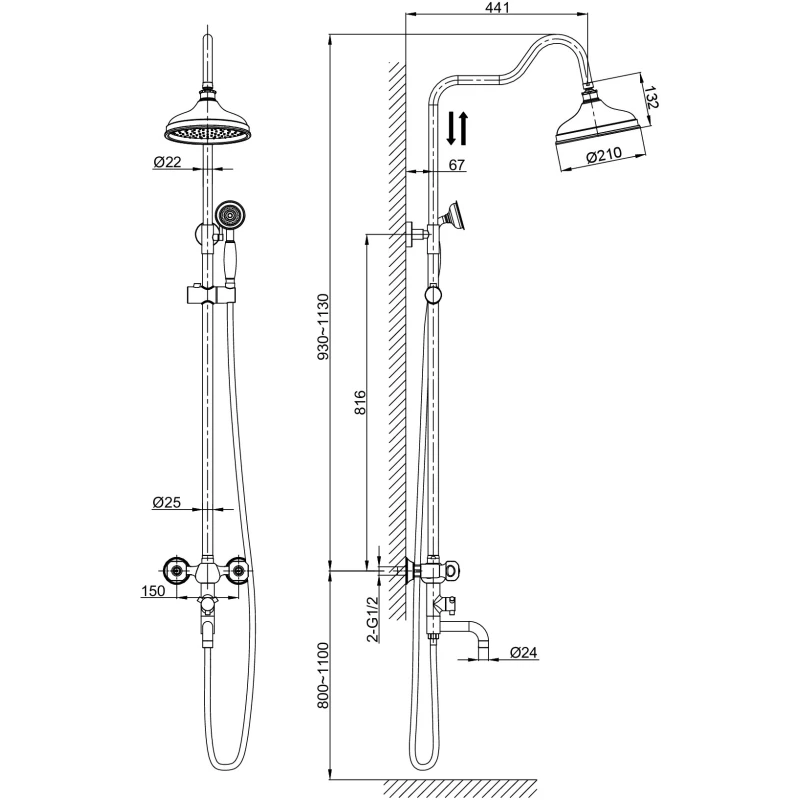 Аэратор, Металлическая розетка, Эксцентрики, Душевой шланг, Душевая лейка, Держатель для душевой лейки, Верхний душ, Смеситель, Кронштейн, Штанга душевая