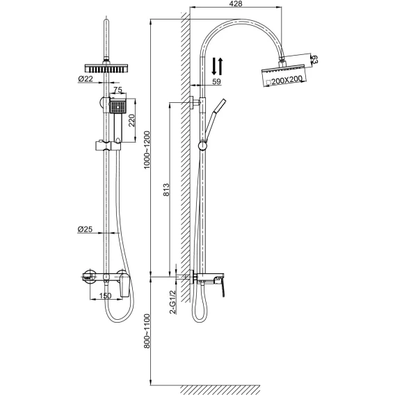 Душевая система 200 мм D&K Rhein.Lessing DA1323701C05