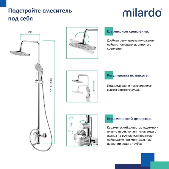 Душевая система 250 мм Milardo Rora RORSB4FM06