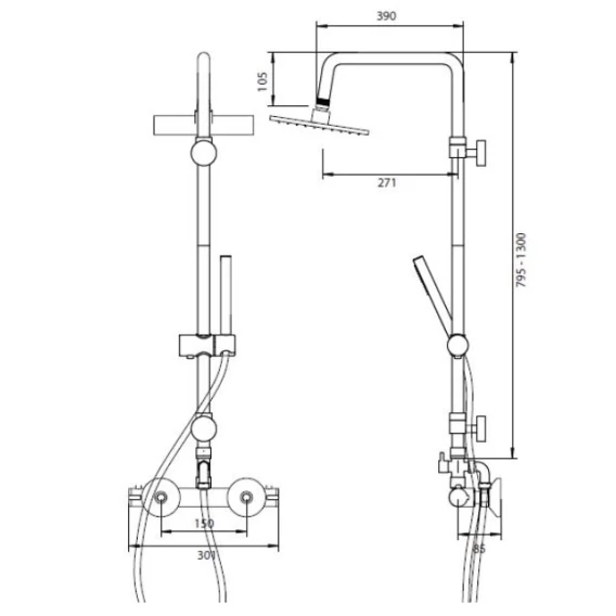 Металлическая розетка, Эксцентрики, Душевой шланг, Душевая лейка, Держатель для душевой лейки, Верхний душ, Кронштейн, Штанга душевая, Термостат