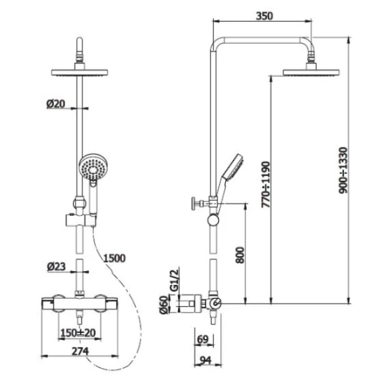 Металлическая розетка, Эксцентрики, Душевой шланг, Душевая лейка, Держатель для душевой лейки, Кронштейн, Штанга душевая, Термостат