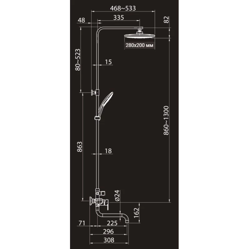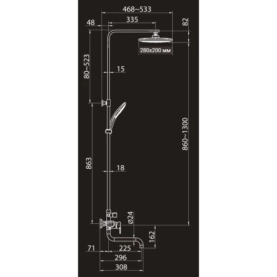 Душевая система 280x200 мм Elghansa 2304483-2K (Set-25-New)