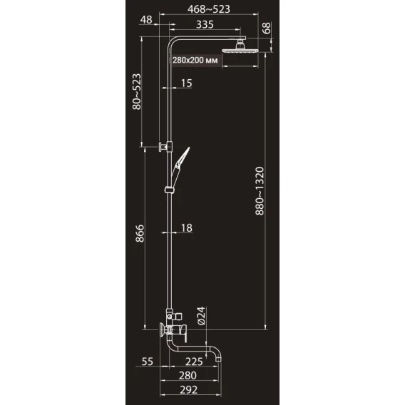 Душевая система 280x200 мм Elghansa 2306683-2K (Set-25-New)