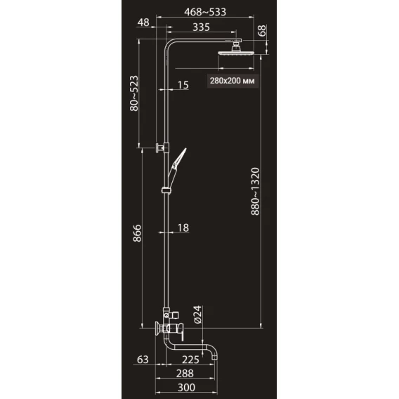 Душевая система 280x200 мм Elghansa 2308883-2K (Set-25-New)