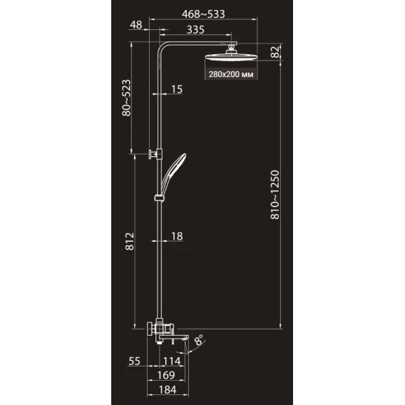 Душевая система 280x200 мм Elghansa 2332269-2K (Set-25-New)
