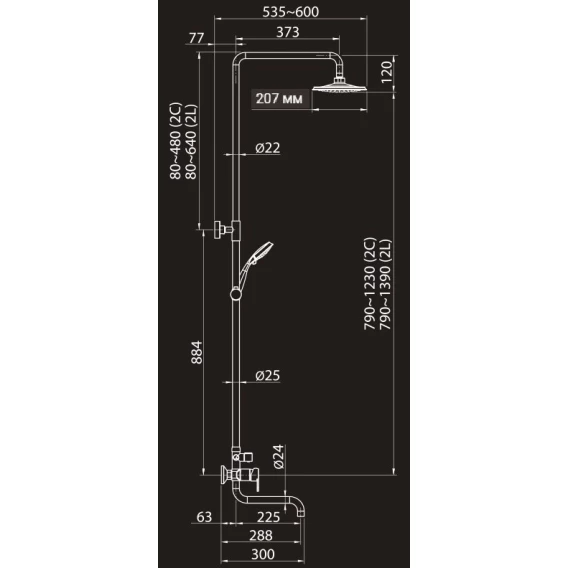 Душевая система 207 мм Elghansa 2308883-2C (Set-22-New)