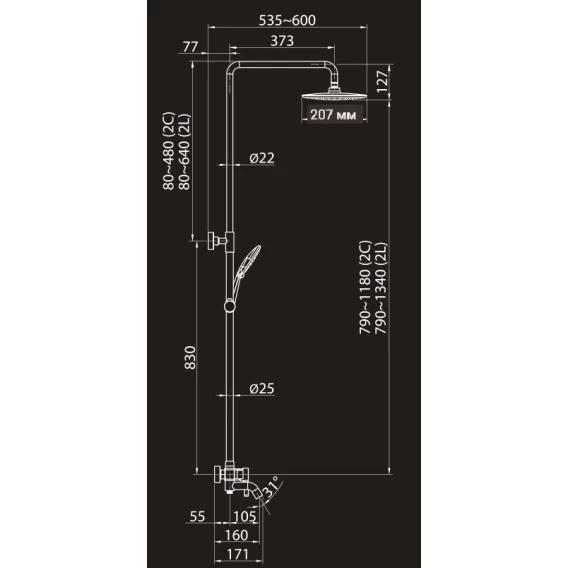 Душевая система 207 мм Elghansa 2330524-2C (Set-22-New)