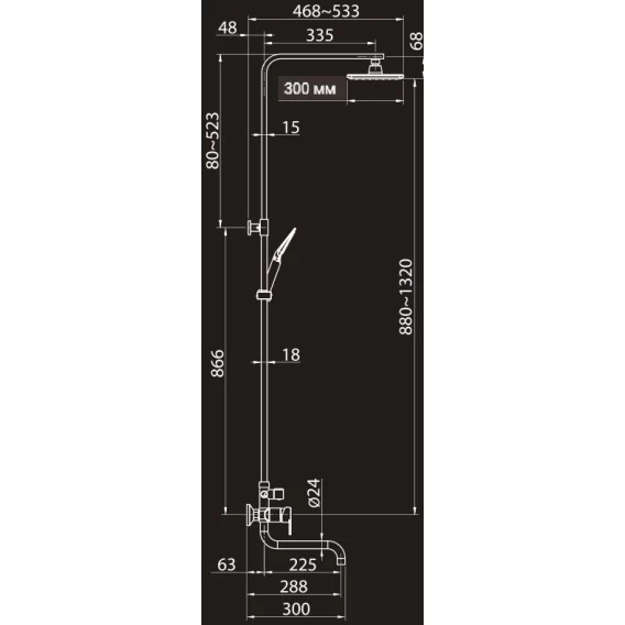 Душевая система 300 мм Elghansa 2308883-2K (Set-18)