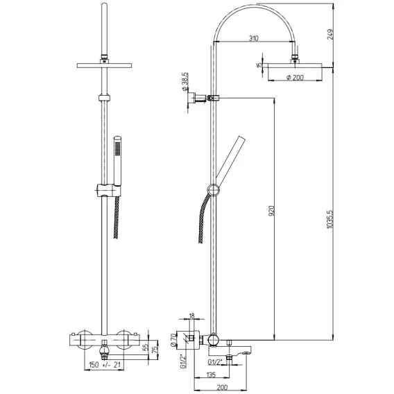 Аэратор, Металлическая розетка, Эксцентрики, Душевой шланг, Душевая лейка, Держатель для душевой лейки, Верхний душ, Кронштейн, Штанга душевая, Термостат