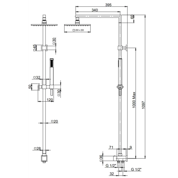 Тип душа Душевая стойка