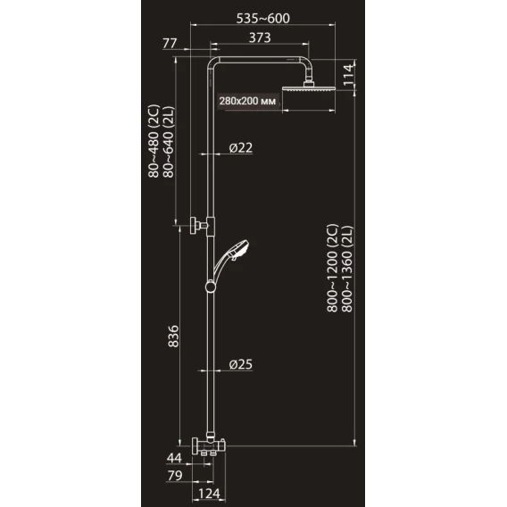 Душевая стойка 280x200 мм Elghansa 1700172-2C (Set-25-New)