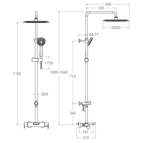 Аэратор, Металлическая розетка, Эксцентрики, Душевой шланг, Душевая лейка, Держатель для душевой лейки, Верхний душ, Смеситель, Кронштейн, Штанга душевая