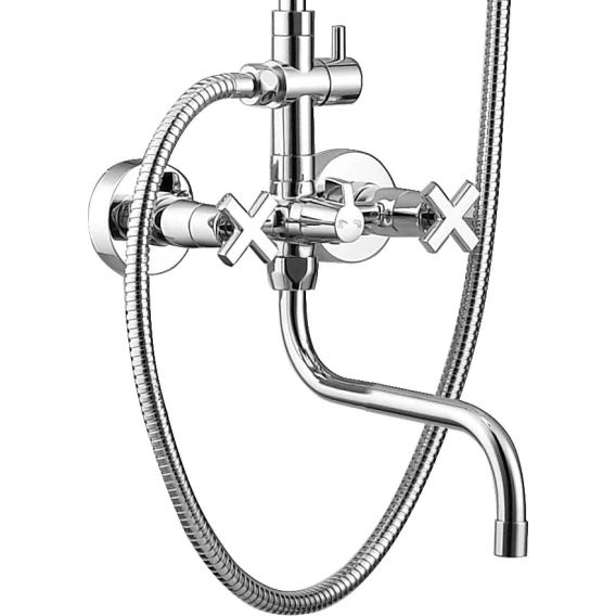 Металлическая розетка, Эксцентрики, Душевой шланг, Душевая лейка, Верхний душ, Излив, Смеситель, Кронштейн, Штанга душевая