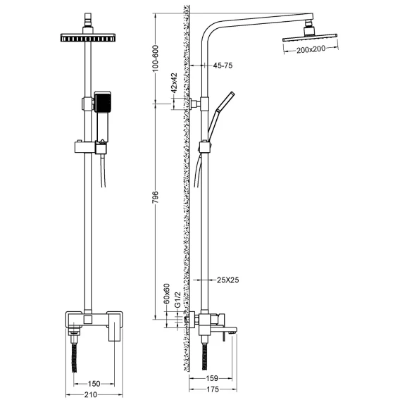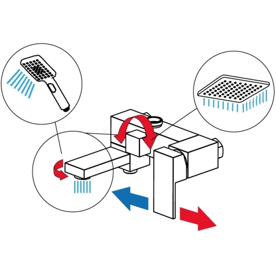 Аэратор, Металлическая розетка, Эксцентрики, Душевой шланг, Душевая лейка, Держатель для душевой лейки, Верхний душ, Смеситель, Кронштейн, Штанга душевая
