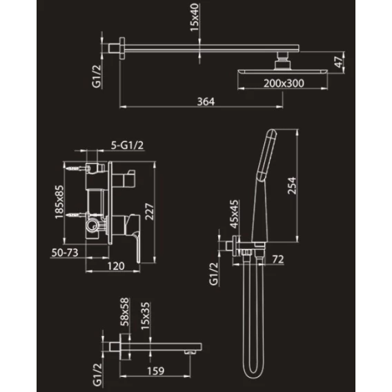 Душевой комплект 300x200 мм Elghansa 54Q0743 (Set-15-New)