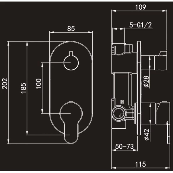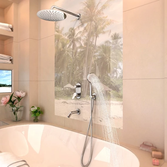 Душевой шланг, Душевая лейка, Подключение для душевого шланга с держателем, Верхний душ, Скрытая монтажная часть, Смеситель, Кронштейн