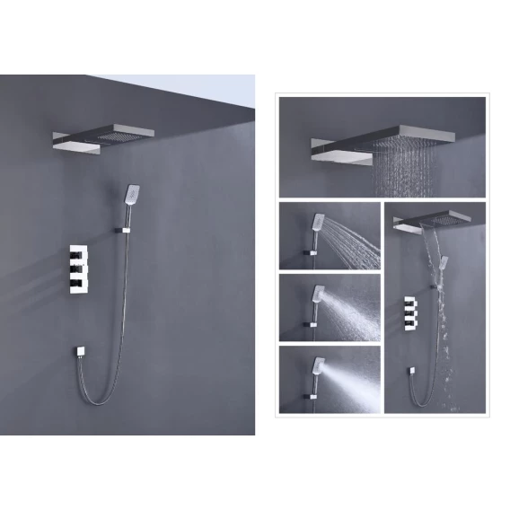 Душевой шланг, Душевая лейка, Держатель для душевой лейки, Подключение для душевого шланга, Верхний душ, Скрытая монтажная часть, Кронштейн, Термостат