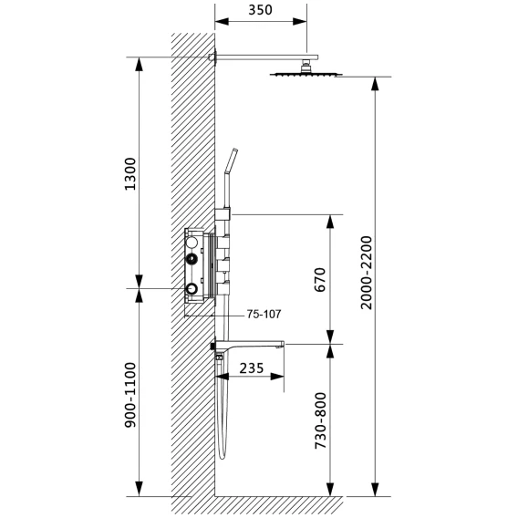 Аэратор, Душевой шланг, Душевая лейка, Держатель для душевой лейки, Подключение для душевого шланга, Верхний душ, Излив, Скрытая монтажная часть, Кронштейн, Термостат