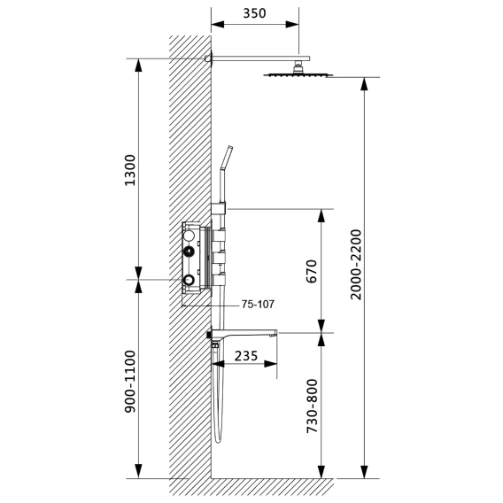 Аэратор, Душевой шланг, Душевая лейка, Держатель для душевой лейки, Подключение для душевого шланга, Верхний душ, Излив, Скрытая монтажная часть, Кронштейн, Термостат