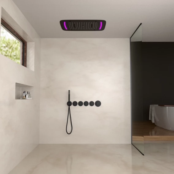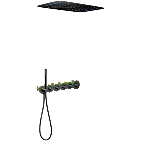 Душевой шланг, Душевая лейка, Подключение для душевого шланга с держателем, Подсветка, Верхний душ, Скрытая монтажная часть, Термостат