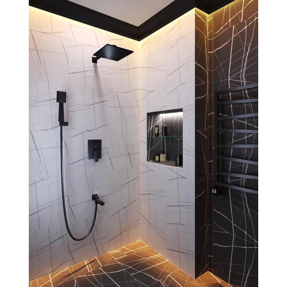 Душевая система Rose R1556T 300x200 мм, со смесителем, оружейная сталь