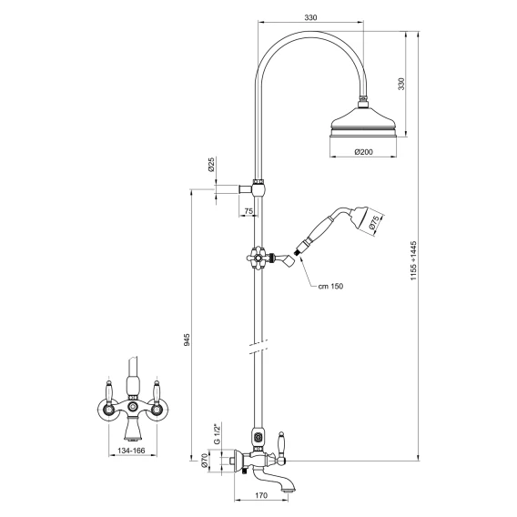 Аэратор, Металлическая розетка, Эксцентрики, Душевой шланг, Душевая лейка, Держатель для душевой лейки, Верхний душ, Смеситель, Кронштейн, Штанга душевая