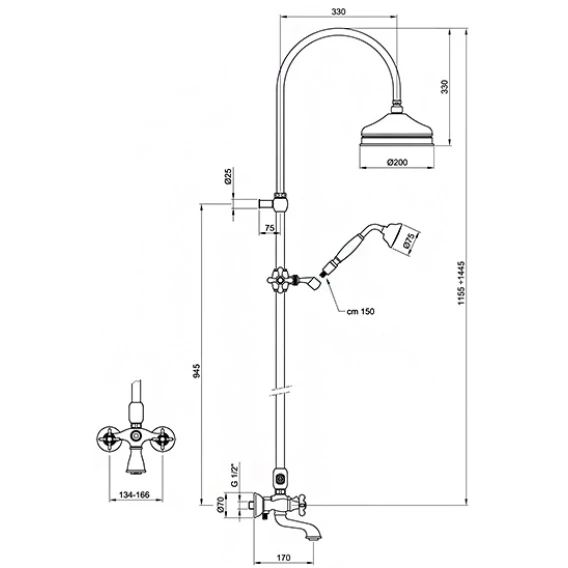 Аэратор, Металлическая розетка, Эксцентрики, Душевой шланг, Душевая лейка, Держатель для душевой лейки, Верхний душ, Смеситель, Кронштейн, Штанга душевая