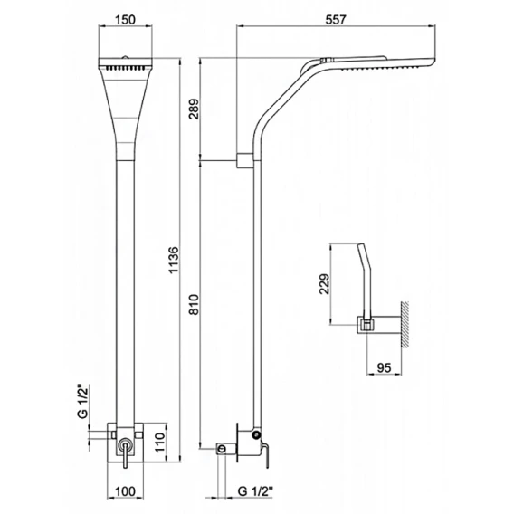 Душевой шланг, Душевая лейка, Держатель для душевой лейки, Подключение для душевого шланга, Верхний душ, Смеситель, Штанга душевая
