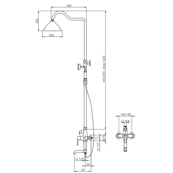 Душевая система 206 мм GPD DST27