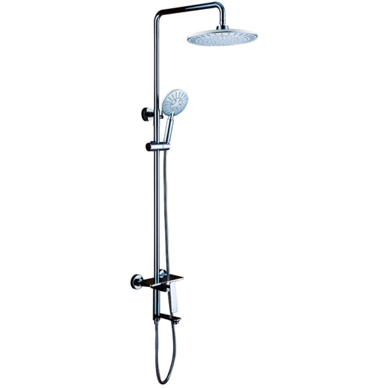 Аэратор, Металлическая розетка, Эксцентрики, Душевой шланг, Душевая лейка, Держатель для душевой лейки, Полочка, Верхний душ, Смеситель, Кронштейн, Штанга душевая