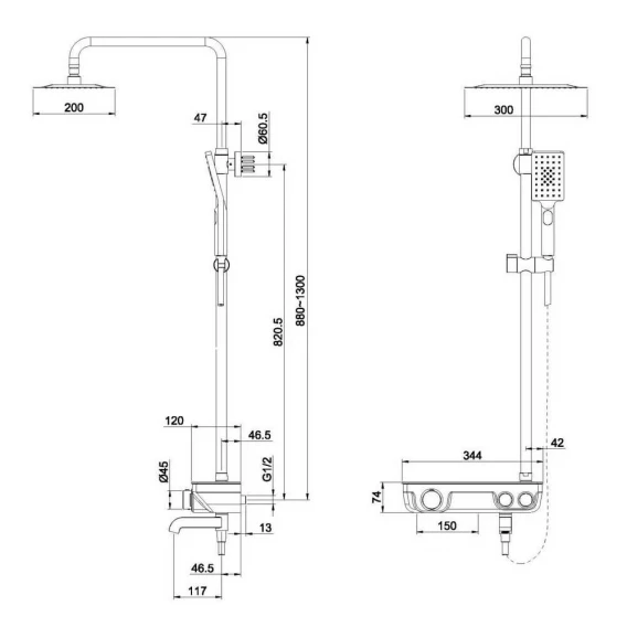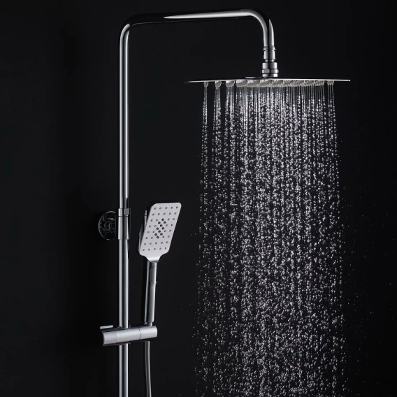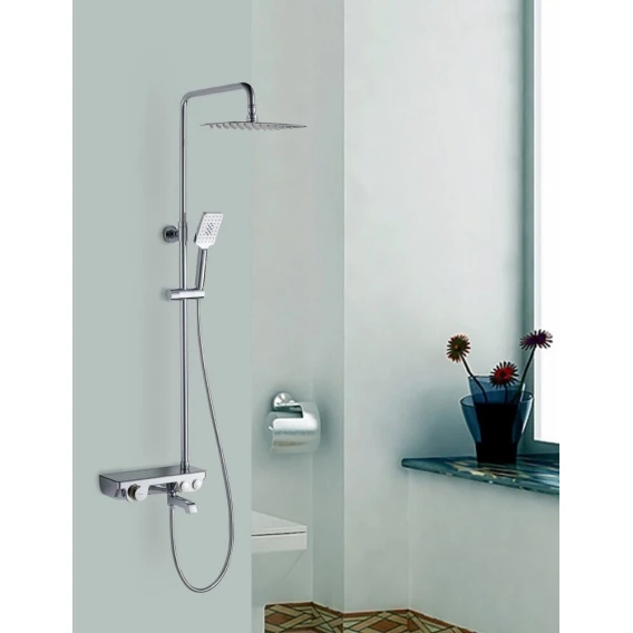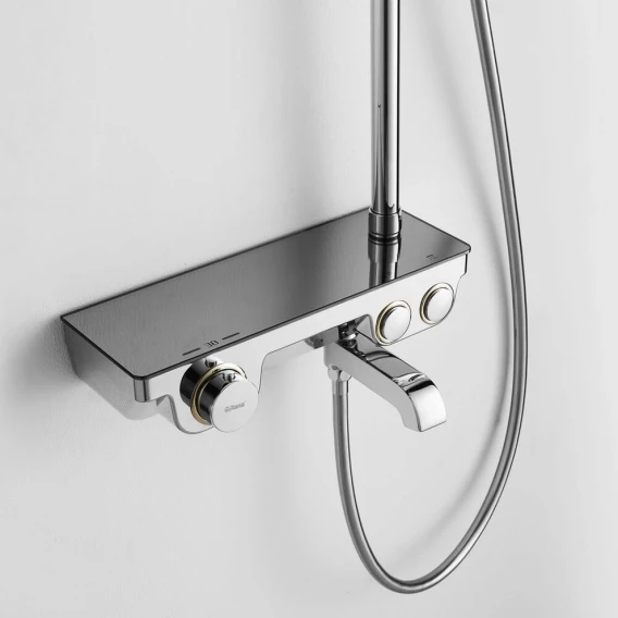 Аэратор, Металлическая розетка, Эксцентрики, Душевой шланг, Душевая лейка, Держатель для душевой лейки, Полочка, Верхний душ, Кронштейн, Штанга душевая, Термостат