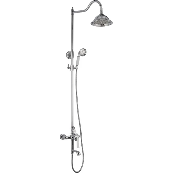 Аэратор, Металлическая розетка, Эксцентрики, Душевой шланг, Душевая лейка, Верхний душ, Смеситель, Кронштейн, Штанга душевая