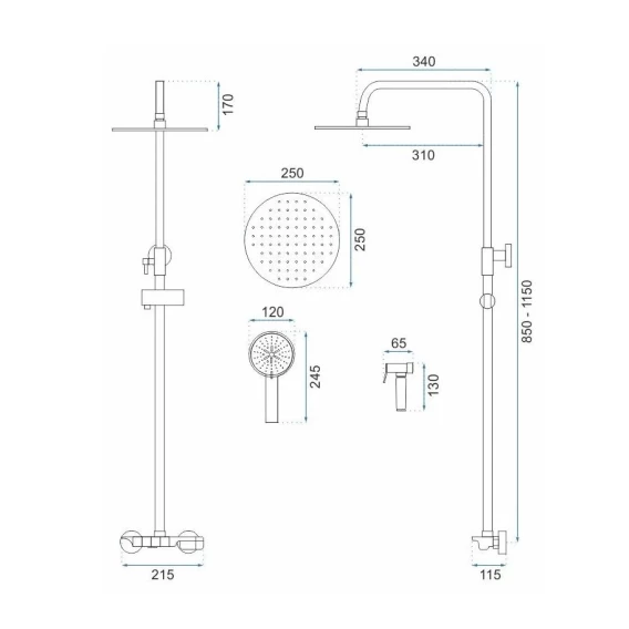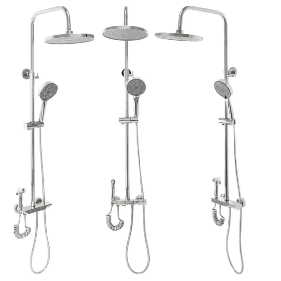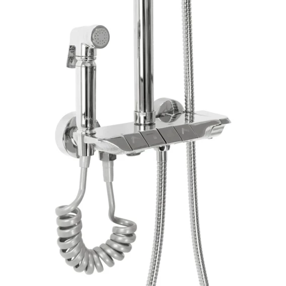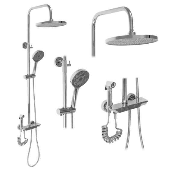 Металлическая розетка, Эксцентрики, Душевой шланг, Душевая лейка, Держатель для душевой лейки, Верхний душ, Кронштейн, Штанга душевая, Термостат