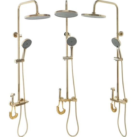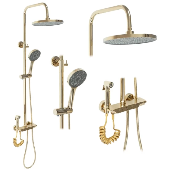 Металлическая розетка, Эксцентрики, Душевой шланг, Душевая лейка, Держатель для душевой лейки, Верхний душ, Кронштейн, Штанга душевая, Термостат