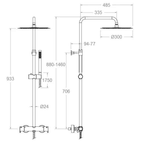 Металлическая розетка, Эксцентрики, Душевой шланг, Душевая лейка, Держатель для душевой лейки, Верхний душ, Кронштейн, Штанга душевая, Термостат