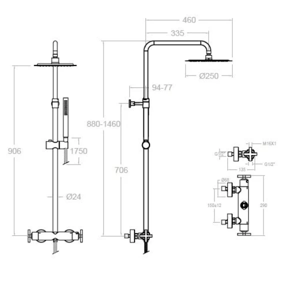 Душевой система 250 мм Ramon Soler RS-Cross 625403RM250