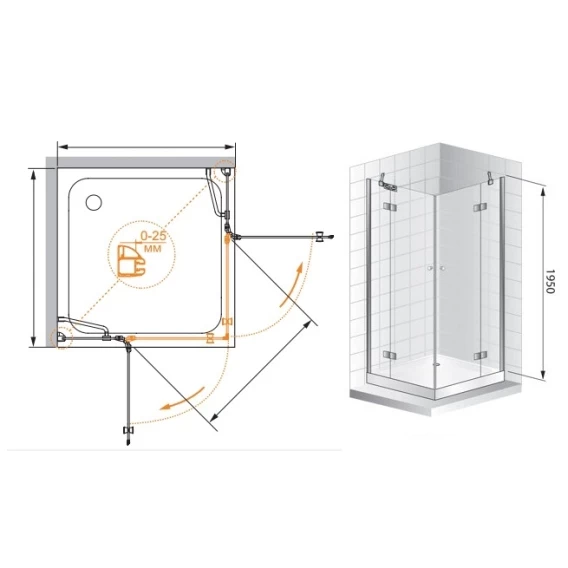 • Габариты с диапазоном регулировок, мм: (980-1000)x(980-1000)x1950