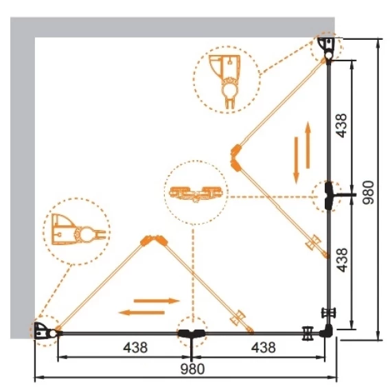 • Габариты с диапазоном регулировок, мм: (980-1000)x(980-1000)x1950