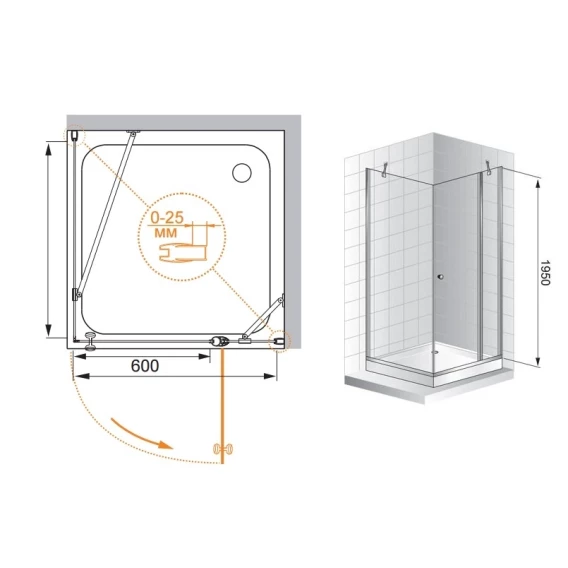 • Габариты с диапазоном регулировок, мм: (960-985)х(970-995)х1970