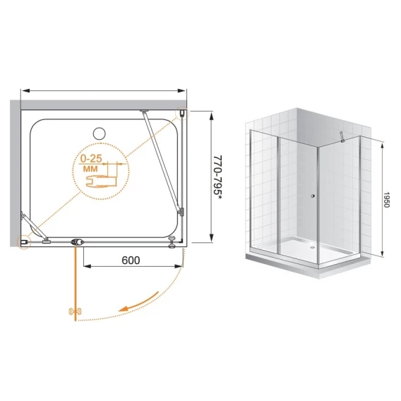 • Габариты с диапазоном регулировок, мм: (960-985)х(770-795)х1970