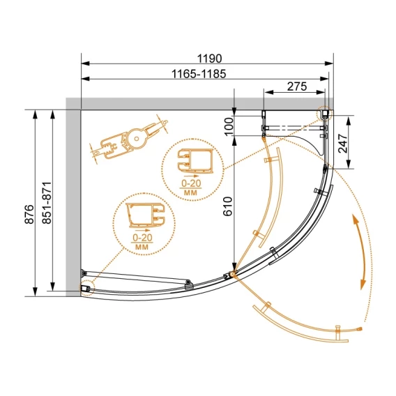 • Душевой уголок, радиальный