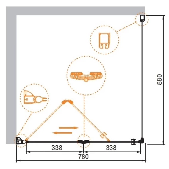• Габариты с диапазоном регулировок, мм: (780-800)x(880-900)x1950