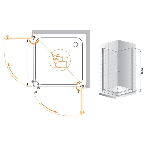 • Габариты с диапазоном регулировок, мм: (862-887)х(862-887х1970