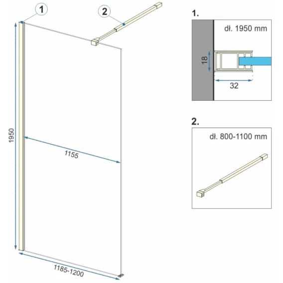 Неподвижная перегородка 120x195 см Rea Aero REA-K8443 прозрачное
