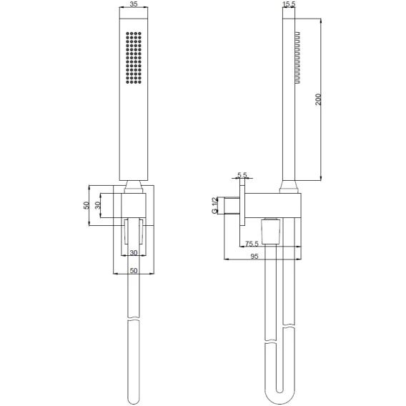 Душевой шланг, Душевая лейка, Подключение для душевого шланга с держателем