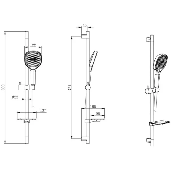 Крепление, Душевой шланг, Душевая лейка, Держатель для душевой лейки, Мыльница, Штанга душевая